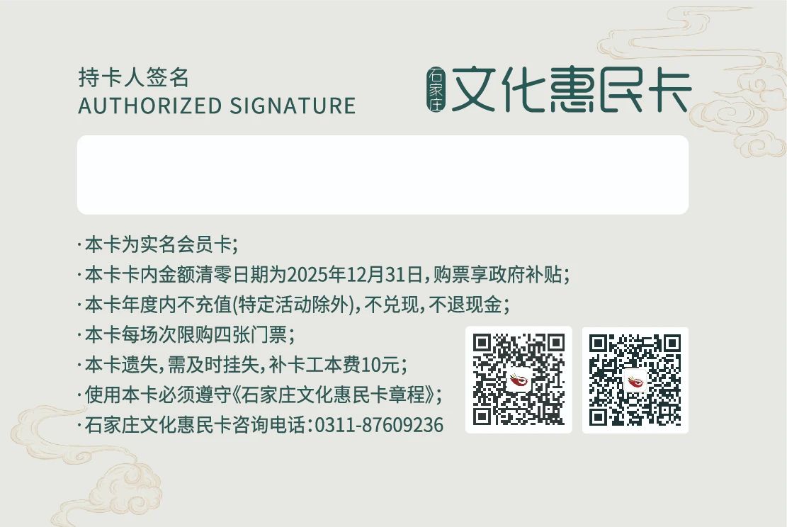 石家庄文化惠民卡于1月6日10时开始发行,线上线下均可办理,数量有限,办完为止,先到先得!