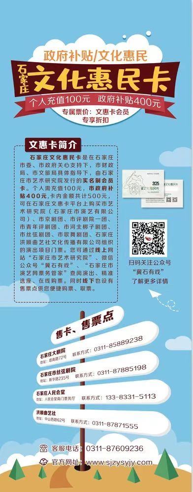 石家庄文化惠民卡于1月6日10时开始发行,线上线下均可办理,数量有限,办完为止,先到先得!
