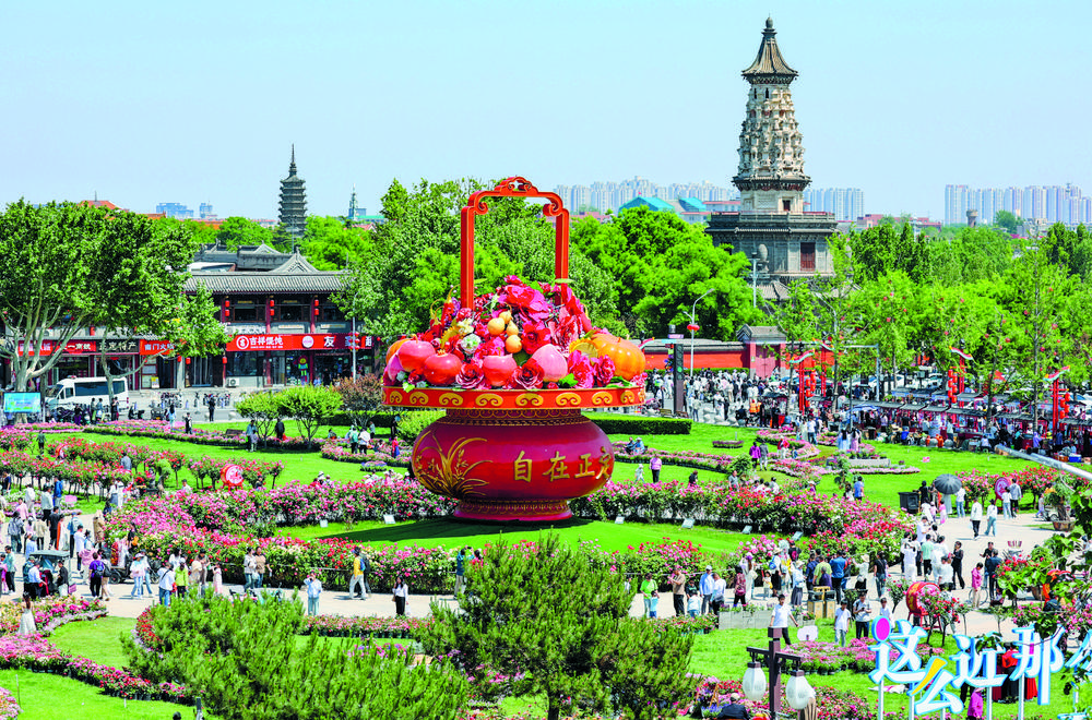 今年“五一”期间,正定县围绕“古城好春光‘五一’游正定”主题,打造了文体盛宴、非遗荟萃、花期相遇、趣玩科技四大文体商旅融合场景,举办24项100余场系列文旅活动,身着古装的演员与游客一同穿梭在古城街巷,沉浸式体验古城魅力。
